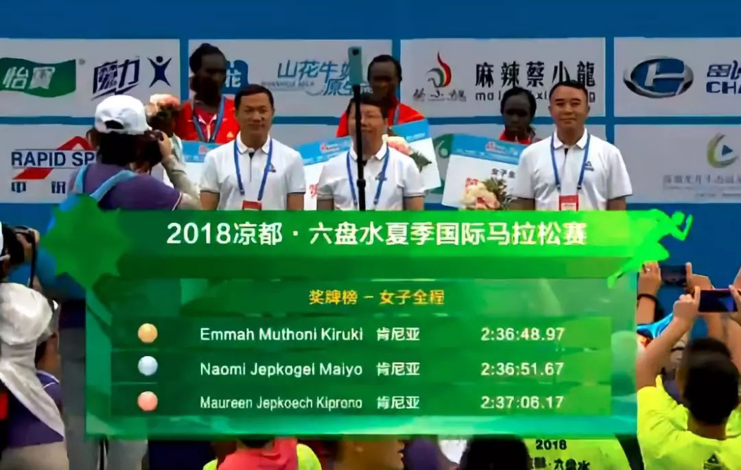 女子全程馬拉松的前三名被肯尼亞選手包攬,且全部打破賽會紀錄2:38:22,其中冠軍艾瑪?shù)某煽優(yōu)?span style="font-stretch:normal;font-size:13px;line-height:normal;">2小時36分49秒。