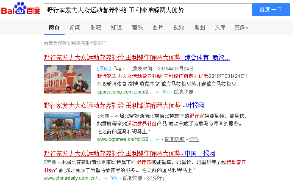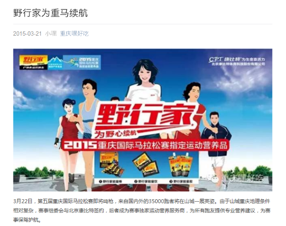 為實現(xiàn)對野行家系列產(chǎn)品受眾人群的精準(zhǔn)營銷,提升康比特的品牌知名度和影響力,6686體育利用自己在網(wǎng)絡(luò)媒體和新媒體的合作渠道和資源優(yōu)勢,在全國各大馬拉松賽前賽后,為康比特策劃一系列品牌線上推廣活動,打造全新內(nèi)容模式,同時在搜狐體育、網(wǎng)易體育、騰訊體育、搜狐新聞客戶端、今日頭條等權(quán)威體育網(wǎng)站、新聞客戶端及賽事本地網(wǎng)站刊發(fā)相關(guān)新聞,引起較好反響,擴大野行家的品牌影響力和滲透力,實現(xiàn)雙贏局面。
